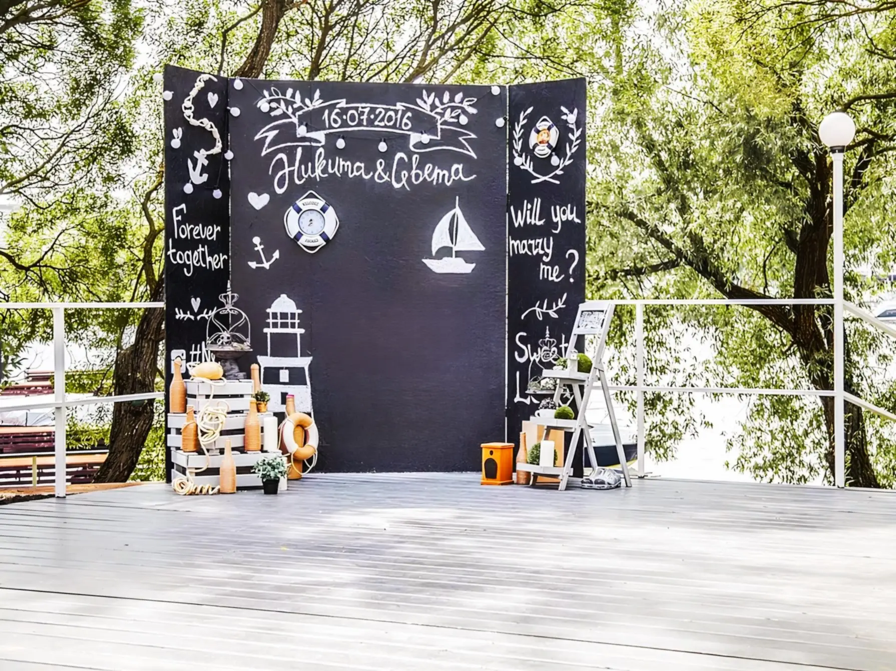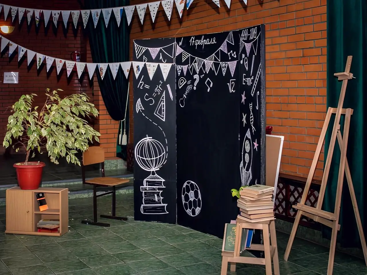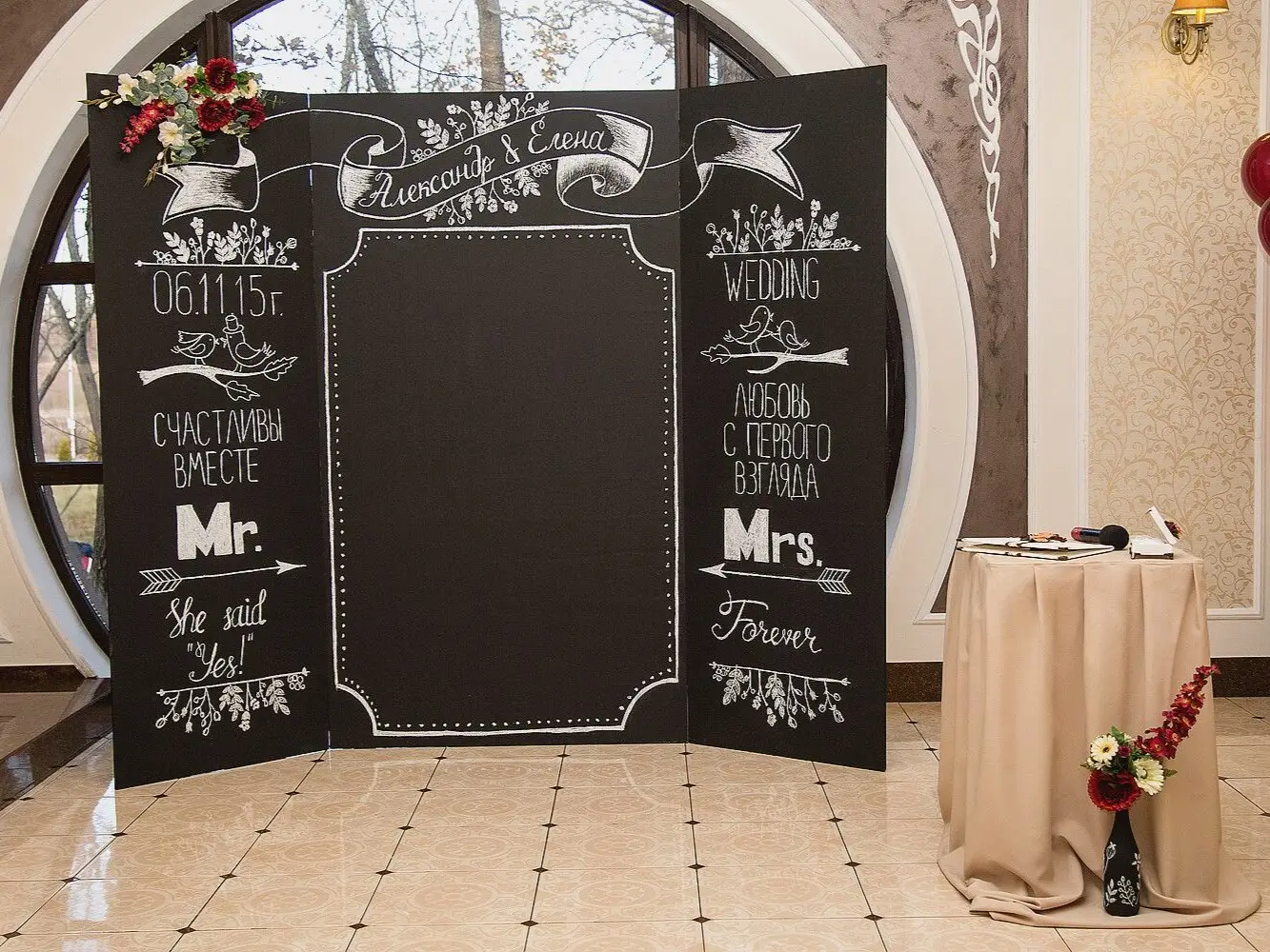 Арка с ретро-лампочками и театральный занавес